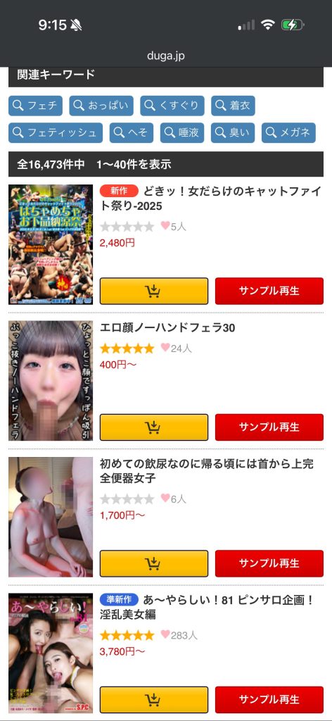 - 人気順 (Sort by Popularity): Best-selling videos where victims scream in helpless laughter.
