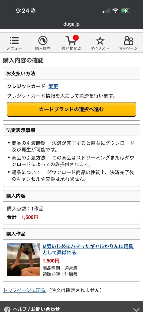 - 「カードブランドの選択へ進む」 (Proceed to Checkout).